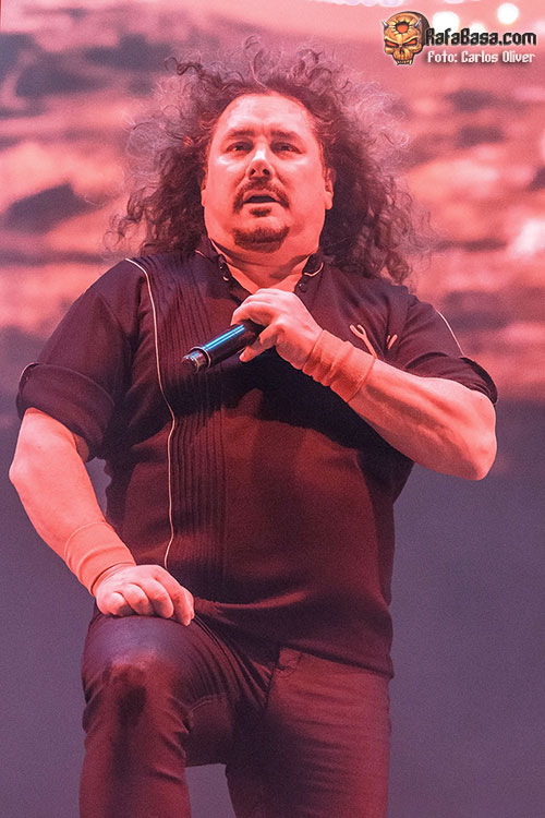 El vocalista Whitfield Crane, único miembro original que queda en la banda, junto al guitarrista Klaus Eichstadt, no se puede decir que sea el frontman más enérgico del mundo, pero sí es cierto que, con sus gafas de sol, su gorra del revés, y ese puntito de cachondeo que siempre lleva consigo, no está exento de carisma, y a la hora de cantar, lo hace de maravilla. Poco a poco se fue viniendo arriba, y en “Neighbor” ya le vimos saltar, zanganear por el escenario, agacharse… todo sin prisa pero sin pausa, conectando con nosotros a su ritmo, pidiendo palmas aquí y allá, y haciéndonos alguna que otra carantoña, como sucedió en “Panhandlin’ Prince”, empleando también algunos efectos de sonido en su voz. Al mismo tiempo, Dave Fortman sí hacía gala de un humor y simpatía a prueba de bombas, saltando en momentos de subidón, arrimándose al frente del escenario y compenetrándose con su compañero Klaus, quien bordó ese gran solo del tema.