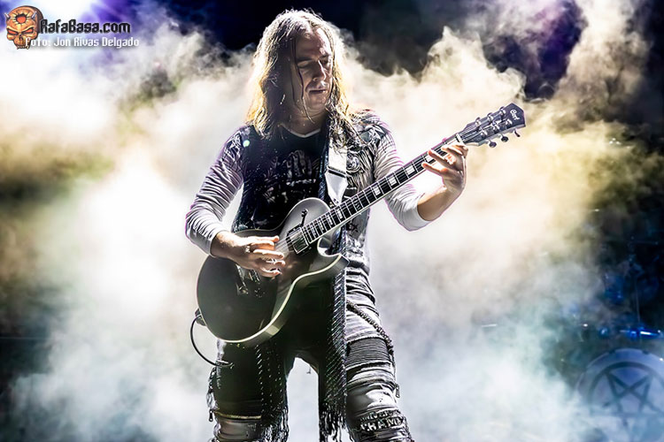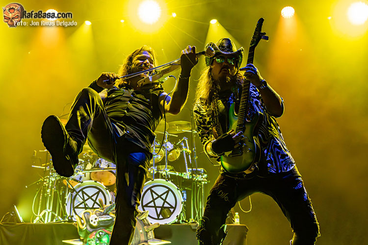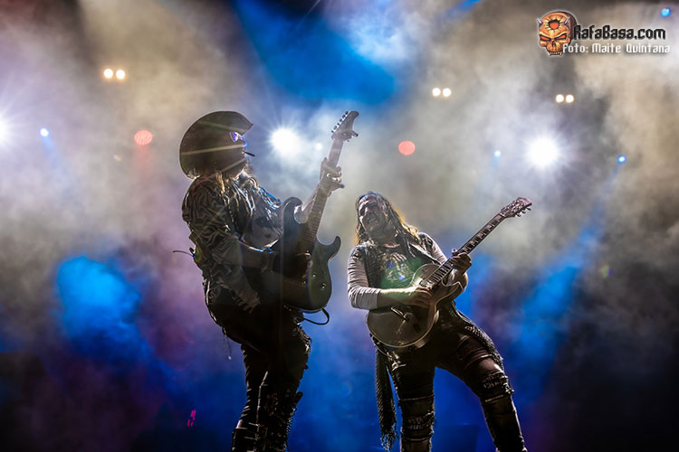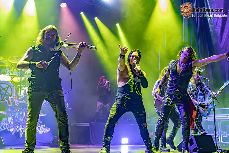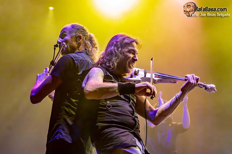 Antes de los bises, MÄGO DE OZ nos hizo dos obsequios de incalculable valor, que un servidor no esperaba encontrar aquella noche. Dos de los temas más difíciles de interpretar en directo: “Finisterra” y “Bandera Negra”. Casi media hora para interpretar tan solo estas dos composiciones, que sonaron impecables. Tete de nuevo acabando con agudos imposibles, Charly demostrando por qué Txus ha confiado en él, y Josema Pizarro destacando con sus gaitas, flautas y demás bártulos. Y de nuevo, destacando por encima de todos, el dios Jorge Salán dando una clase magistral de cómo coño se toca una guitarra (con permiso de Víctor, ojo, que no es manco tampoco precisamente).
