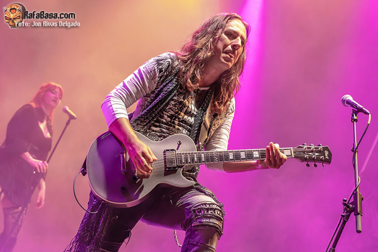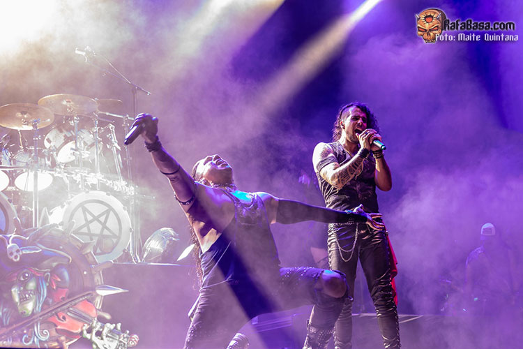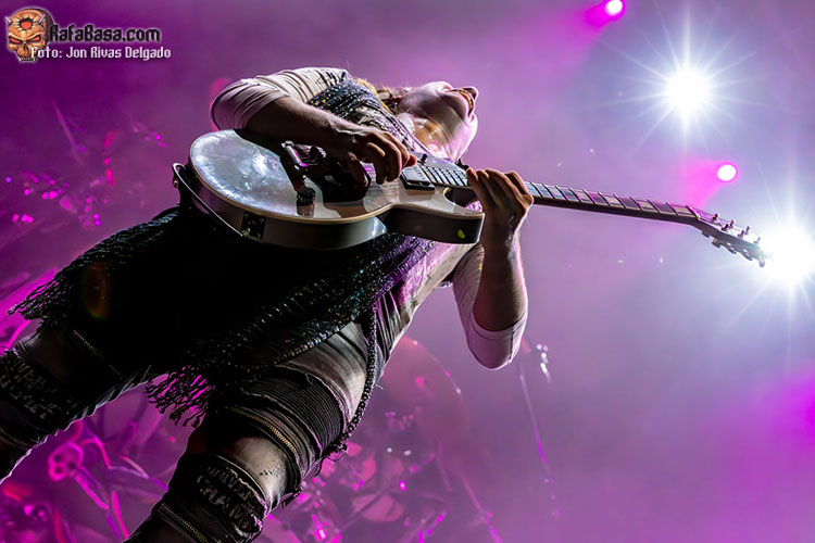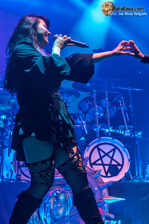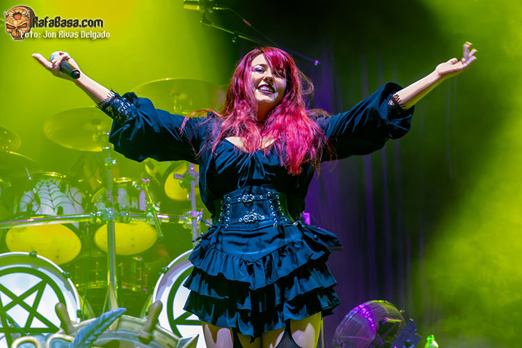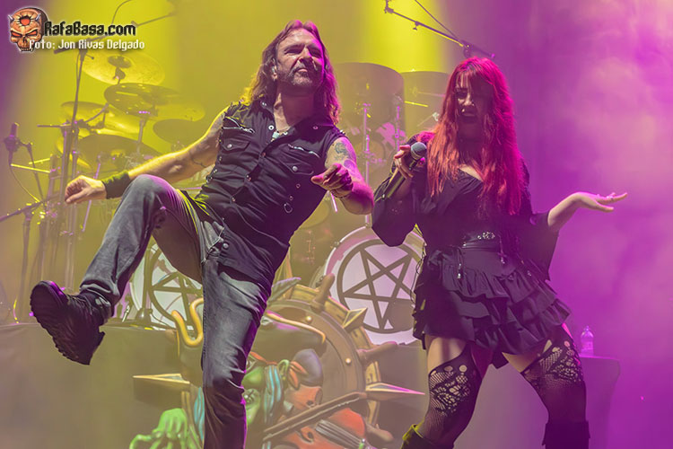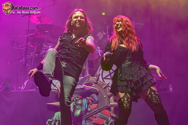 Uno de los momentos de la noche fue la interpretación del tema “La Dama del mar”, por parte de una espectacular Xana Lavey y su compañero Charly. Siendo honestos, al principio eché un poquito de menos a Patricia Tapia, pero joder, ¡Han sido un porrón de años!. No obstante, debo admitir que el trabajo que Xana está haciendo en MÄGO DE OZno puede ser puesto en duda a estas alturas, y que cada vez me gusta más en directo. En su día no me encajaba mucho, pero tengo que recular: Claramente está más que a la altura de la banda. El viernes me quedé absolutamente hipnotizado con su voz, que lució mejor que nunca en el siguiente tema: “Y ahora voy a salir”. Literalmente, Xana se comió el puto escenario, llenándolo ella solita y llevándose la ovación de la noche.