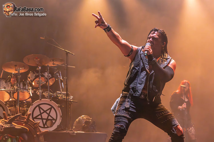 El primer puerto al que llegamos fue una magistral interpretación de “Satania”, con un impecable sonido que fue la tónica general de toda la noche. El trabajo técnico de todo el staff de MÄGO DE OZ es sencillamente milimétrico, pero es que lo de Luismi (Sonak estudios) en el control de sonido roza lo perfecto, sin apenas fallos, con nitidez y potencia por igual.