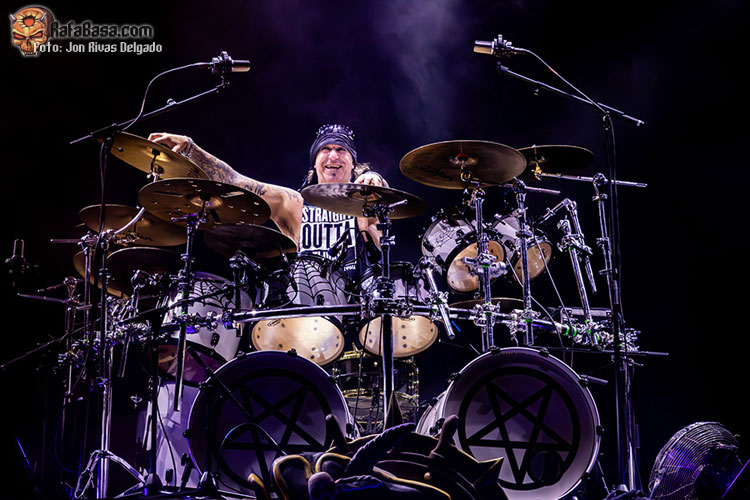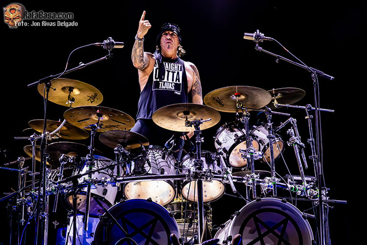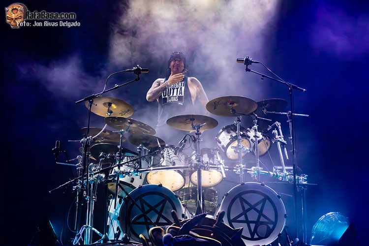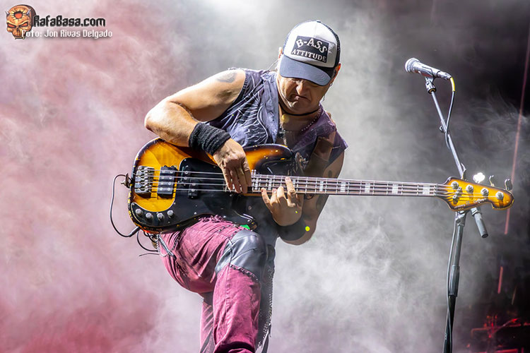 Cuando el corte estaba a punto de acabar… ¡Hostias! Sorpresón inmenso que me llevé al ver a Txus interpretar una especie de solo de batería, para poner el broche de oro a este histórico tema. Hacía mucho, mucho tiempo, que no le veía hacer algo similar en directo. Además, no fue la única vez que lo hizo aquella noche. Y es que con el paso de los años y las nuevas giras, la participación de Txus en los directos se ha limitado a su instrumento y poco más. Personalmente echo de menos las gamberradas, los speeches, y los duetos vocales del pasado, aunque entiendo que todo debe evolucionar y que hay un tiempo para todo en la vida. Así que este nuevo recurso que sacó de la chistera el capitán Di Fellatio, fue todo un acierto a mi entender.