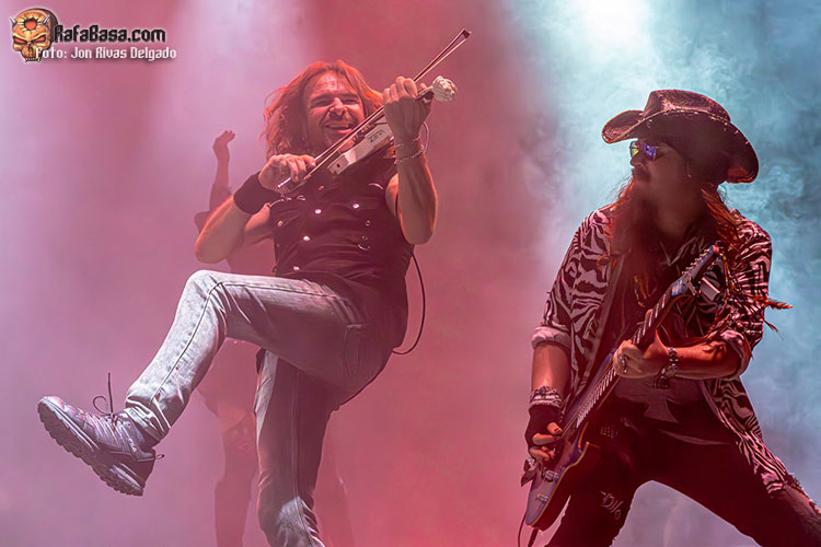 Con el tema “El que quiera entender que entienda”, tras un speech de Tete, salieron los dos vocalistas a escena para interpretarlo mano a mano. Una vez más, el grito inicial de Tete se salió de toda gráfica, y el violín de Moha brilló con luz propia. Por su parte Fernando Mainer, al que vimos como siempre disfrutando, hizo su magia con el bajo. Derrochando carisma como si tuviera una taza infinita repleta de él.