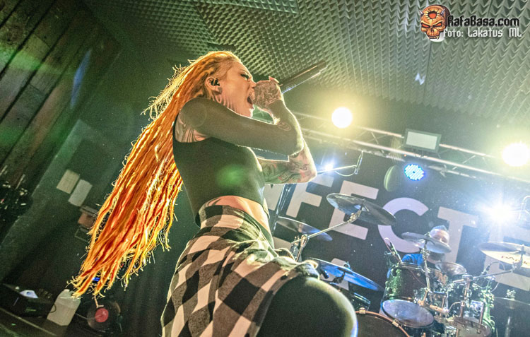 Tras los cambios pertinentes, llegaba el turno de INFECTED RAIN . La banda comandada por Lena Scissorhands lleva varios años recorriendo los escenarios de los festivales europeos más importantes y justo un año después de su paso por Portugalete, volvían a tierras vascas en la primera de sus fechas por el estado.