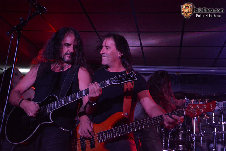 Vi muy bien, tocando y haciendo coros a Enrique Rosales, quien puso la veteranía y se vació totalmente, junto a un J.M. Salas perfecto al bajo, (me encanta lo bien que toca), Zoraida dándole el ingrediente definitivo con sus teclados y sonrisas, Tino sobrio a la batería, pero ideal para los temas de AZRAEL , tocando como un reloj, y quiero hacer una mención muy especial para Óscar, quien a pesar de ser su primer concierto completo con AZRAEL , y tener problemas con el vibrator de su guitarra, dio una clase de matrícula de honor tocando. Enrique Rosales, su compañero, toca de maravilla, es más clásico… Pero lo de Óscar es magistral, y además de formar un gran dúo con Rosales, brilló a máxima intensidad, gracias a su clase y gran nivel. Eso le dio puntos extras a AZRAEL .