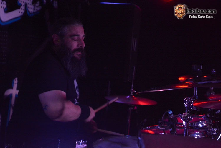 Cierto es que gran parte de que AZRAEL sean la tempestad sonora y sobre todo escénica que demsotraron en Zaragoza, la tiene su vocalista Marc, quien acapara un alto porcentaje de protagonismo escénico y se echa a las espaldas la banda, cantando sin paliativos, con una voz perfecta para cada tema, muy powermetalera, dominante especialmente en tonos altos, rasgada, y exultante.