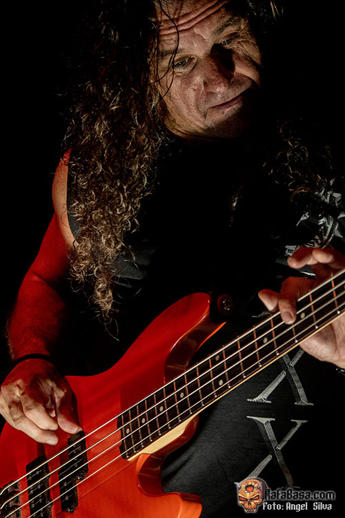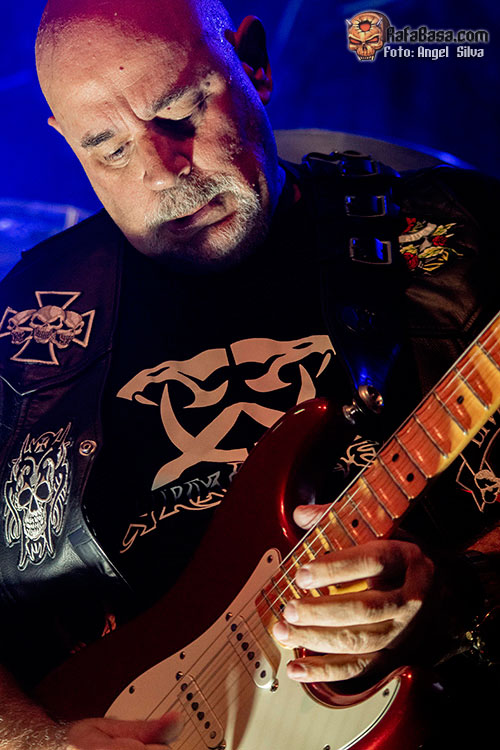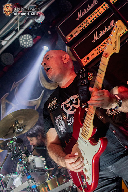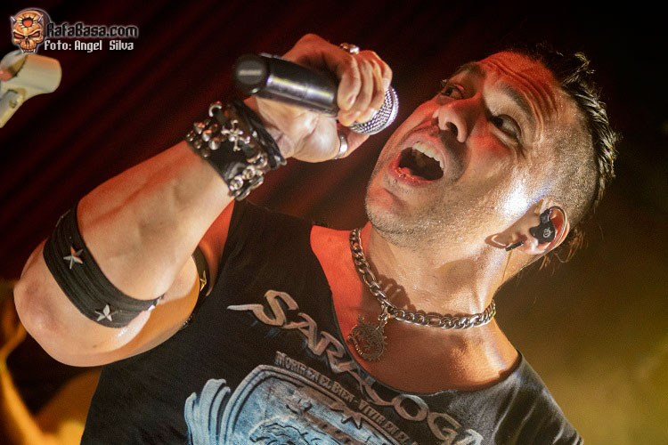 Con el cuarteto posicionado encima de las tablas, liderado por dos leyendas del rock nacional como Niko del Hierro en el lado derecho y su compañero de mil batallas Jero Ramiro en el izquierdo junto con el mencionado Arnau Martí en la batería, el público gritaría la cuenta atrás que funciona de intro para que SARATOGA entraran a fuego con “Tras las rejas”, momento en el que hace aparición un Tete Novoa que llegó a Vigo empecinado en aniquilar a la concurrencia con su poderoso timbre de voz y un dominio total y absoluto del escenario. Las dotes portentosas del toro de Pinto no explotarían, sin embargo, hasta bien entrado el show, ya que en los primeros temas la voz se escuchó algo baja, pero que Tete se hace oír hasta en un alto horno no debiera ser secreto alguno. Tras la espídica “A morir” el show cobraría mayor nitidez en cuanto a sonido se refiere y la Masterclub celebró una de esas grandes noches de Heavy Metal dónde la comunión público y banda fue total.