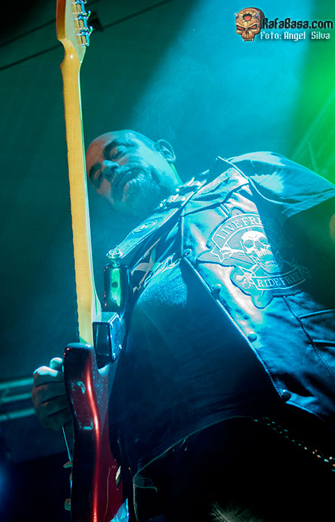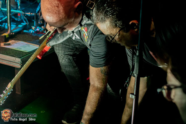 Hablando de guitarras, Jero Ramiro, que se mantuvo en un papel serio y profesional toda la noche, tuvo algún que otro problema con su pedalera y con uno de los amplificadores. El bueno de Jero esgrimía ordenes aquí y allá para que su guitarra sonara como dios manda. No es que se percibiera nada mal realmente pero estas son cosas de la pulcritud y el detallismo de músicos “de los de antes” lo cual es de agradecer. Un Jero para el que sería una noche especial ya que celebraba su cumpleaños, algo que nos chivó Tete y que obtuvo la respuesta de un encendido público ante un imperturbable Jero que parecía estar pensando en atacar el siguiente tema y no tanto en apagar velas.