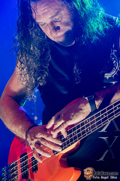 Uno de los estribillos más celebrados de la noche sería el de “No sufriré jamás por tí” clásico tardío en los treinta años que contemplan a la banda pero clásico al fin y al cabo. Serían muy pocas las andanzas por tiempos actuales. La siguiente en caernos encima no es otra que “Maldito corazón”. Parece que fue ayer cuando editaran el disco aquel con el luchador de sumo en la portada. (Maldita sea mi suerte porque de aquellas todavía me quedaba pelo). El estribillo se nos mete en la cabeza hasta horas después de haber finalizado el show. Así son las cosas. Para nostalgia, la de “Mi ciudad” que sí nos retrotrajo a una época en la que el heavy metal español todavía no se había vestido el traje del power metal. Fueron este y alguno otro de aquella época los de mayor sabor guitarrero dónde Niko y Jero intentan competir en protagonismo con un omnipresente Tete.