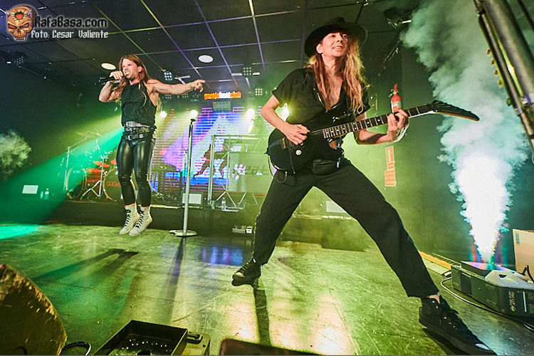 Si Rexon saca una bandera americana con su logotipo, ya sabemos que va a caer "Anthem for America" de su "Street Lethal" de 2021, sin quitarse esas gafas de aspecto ochentero en ningún momento, con chulería innata y manteniendo su tono vocal muy dignamente sin parar de moverse por el escenario, posar y mostrar el gran frontman que es…y que siempre fue, tal y como pudimos comprobar en anteriores visitas. He de decir que la banda ha crecido en directo, y su sonido es muchísimo más profesional y brillante, mientras que noto algo de nostalgia entre los más conocedores por escuchar algo de sus primeros discos. Miraron atrás, pero no demasiado, a través de "XIII" de su "Ruff Justice", en la que Danny, haciendo uso de una máscara como la de Jason de Viernes 13, y un cuchillo, teatralizó uno de los mejores momentos de su actuación, en el que el sonido llegó a su máxima dentro de su tiempo en escena, y nos puso a corear ipso facto su adictivo estribillo, mientras que "Silent Thunder" sirvió como cénit para que la banda se metiese del todo al entregado público en el bolsillo.