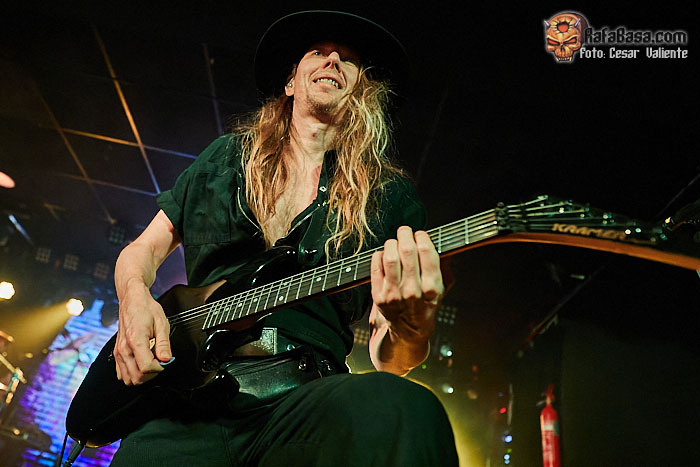 Tienen himnos para dar y tomar, hit singles en potencia, que de haber sido grabados tres décadas atrás, hablaríamos de otro nivel de fama, probablemente de la que llena estadios, y esta noche sería la indicada para, como los pavos reales, sacar a relucir el plumaje más vistoso. Los suecos tienen muchas armas de seducción, y además, cada vez las utilizan con más seguridad y convicción, tal y como se pudo apreciar nada más empezar el vídeo en el que la formación pasea por las calles que adornan la portada de su aclamado último álbum, "Force Majeure". El riff de "Demon Eyes", el más veloz y "escuela Rainbow" de su historia, suena como un huracán. Los cañones de humo, la adrenalina de la banda, los movimientos atléticos de Leckremo y la claridad con la que suena la guitarra de Dave Dalone, en consonancia con el gran sonido del resto de los chicos, hace presagiar que han venido a apostar todo al mismo color…¡qué energía!. Kenny no para de subir sus brazos, correr, animar, levantar su micro…y cantar con un dominio absoluto de la situación.