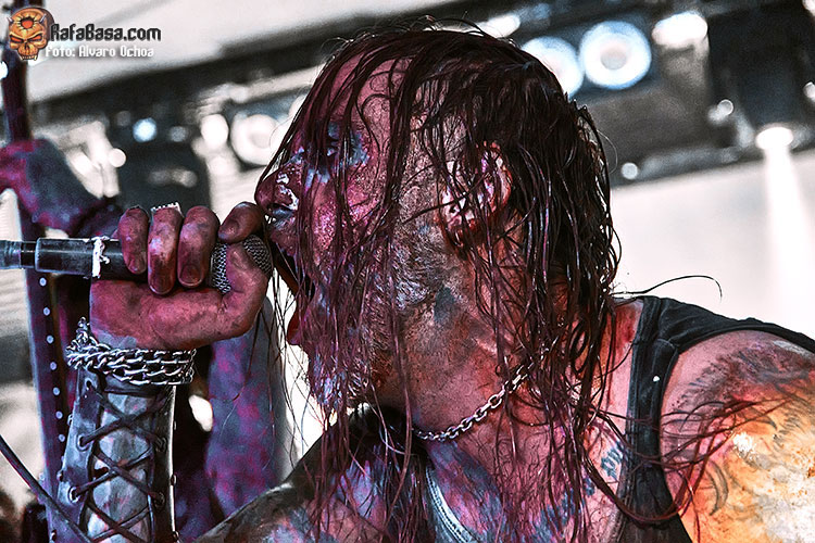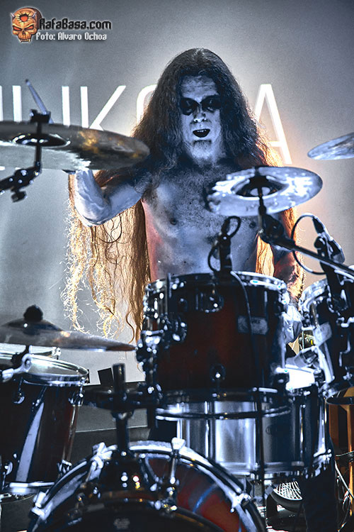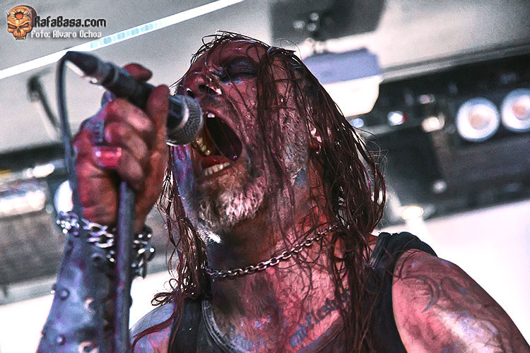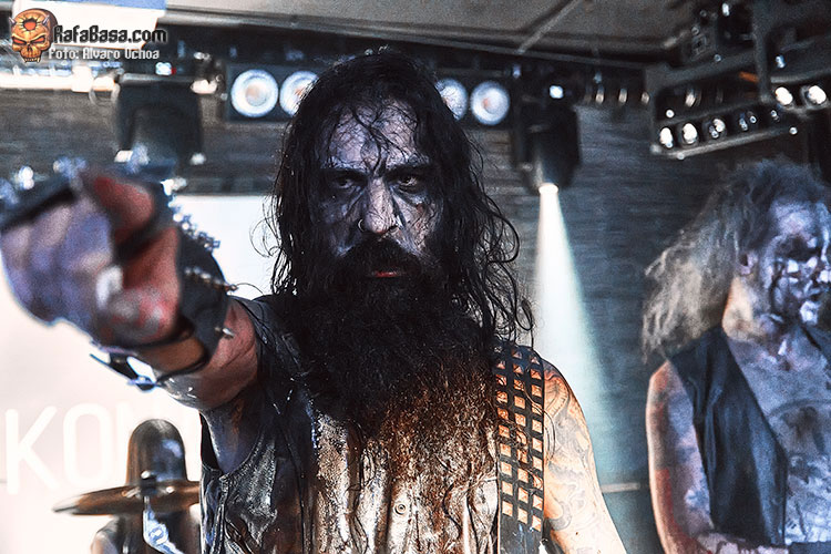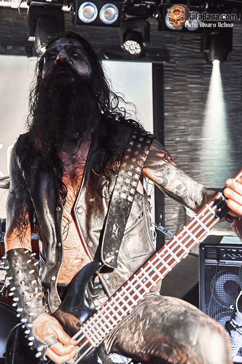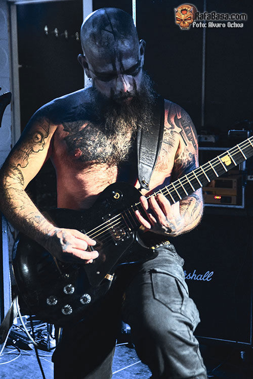 Cubiertos de sangre y con el característico Corpse painting aparecía en escena el quinteto DARVAZA, y ya desde el primer segundo nos dieron a entender que no dejarían nada a su paso, con un sonido agresivo, destruyéndolo todo, comandados por un Wraath magistral que nos sacarían del trance en el que nos había atrapado SPECTRUM MORTIS, para destruir cada uno de nuestros huesos con un sonido aplastante, rápido y directo. “Mother of Harlots” fue prueba de ello, con “Derelict of Passion” dejarían caer sobre nosotros toda su ira, muy bien recibida por un público entregado, “The Barren Earth” con esos coros y medios tiempos iniciales nos despistaban para luego sumergirnos en una vorágine de violencia sonora.
