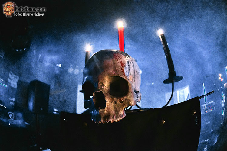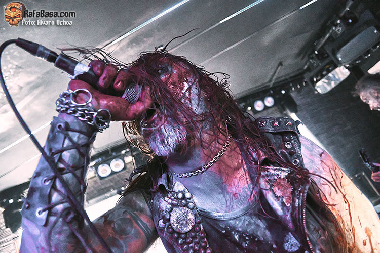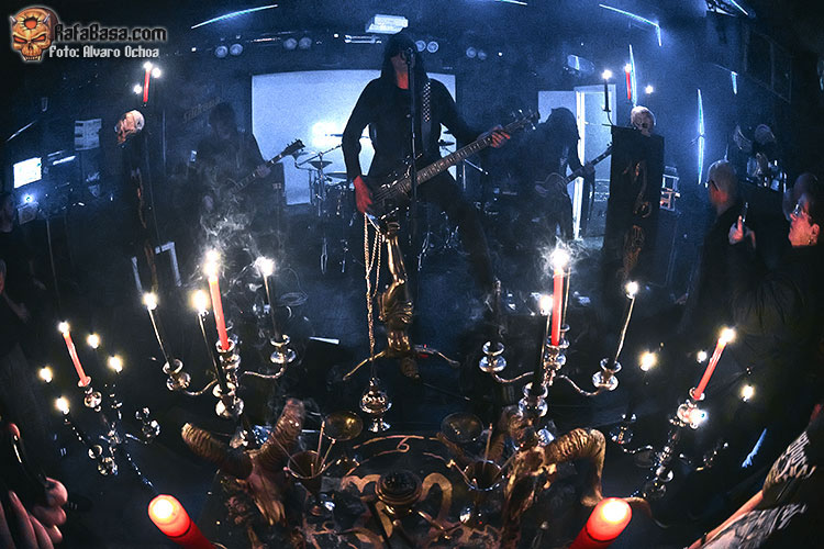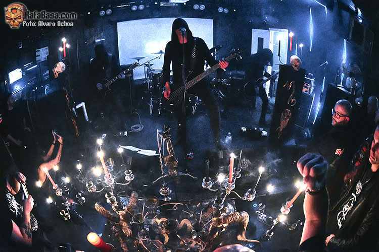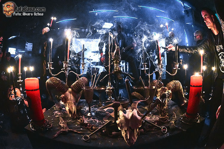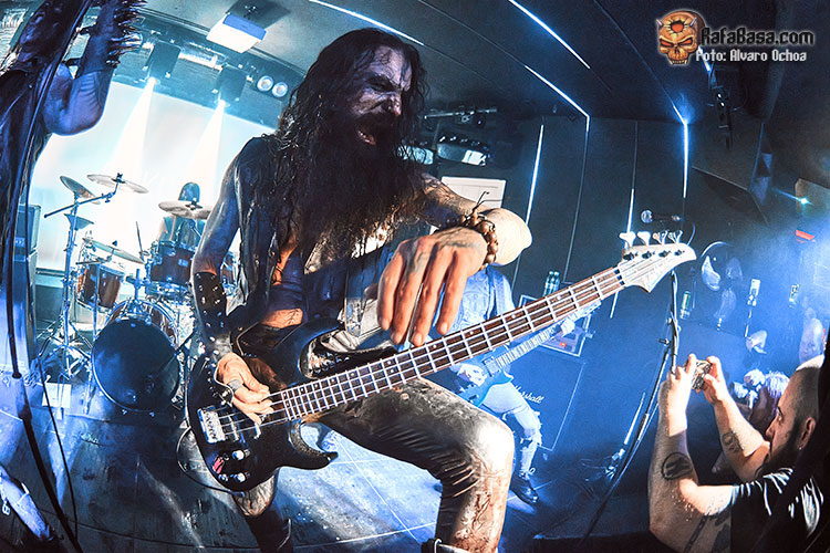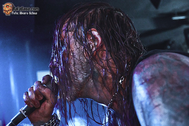 Con “This Hungry Triumphant Darkness” seguiría azotando nuestros tímpanos con ese juego de guitarras corrosivas y esos riff destructivos y machacones; la seguiría “Towards the Darkest Mystery” donde la putrefacta voz de Wraath servía para adentrarnos en ese espiral de oscuridad y violencia del que habíamos sido víctima desde el primer segundo, “Fearless Unfeared He Slept” era el preámbulo para una de las grandes sorpresas de la noche, me refiero a “Gospel of Hate” Cover de los míticos “Celestial Bloodshed” una auténtica locura con un Wraath entregado y un Omega comandando todo desde los parches con ese doble bombo y esos blast beat brutales.