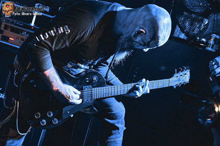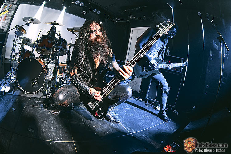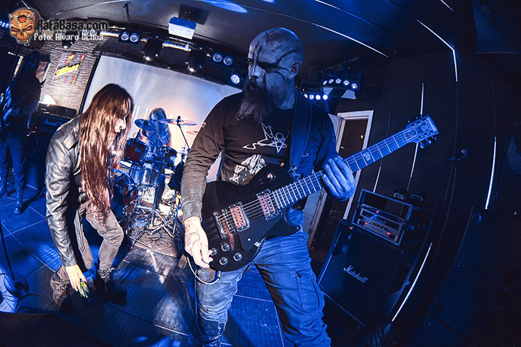 Tal y como estaba previsto a las 20:20 empezaba la ceremonia, apareciendo en escena “SAETAIER”, el quinteto proveniente de Barcelona no perdió el tiempo y desde el primer segundo azotó la sala Silikona con un sonido agresivo y corrosivo, desatando su furia sobre todos los que nos acercamos para ser sorprendidos por una banda que nos estaba ofreciendo un auténtico pandemónium. ¡Vaya manera de comenzar la noche! si la banda “menos conocida” nos estaba dejando de piedra, qué quedaría para las dos siguientes. Poco se sabe de los catalanes SAETAIER, de momento sólo podemos conseguir en YouTube un Lyric Video del sencillo Chaos Serpent y, según pude enterarme en la sala, pronto tendremos noticias del lanzamiento de su primer álbum. Sin duda, los catalanes han despertado mi interés y estaré atento a lo que viene, ya que, por lo visto, prometen.