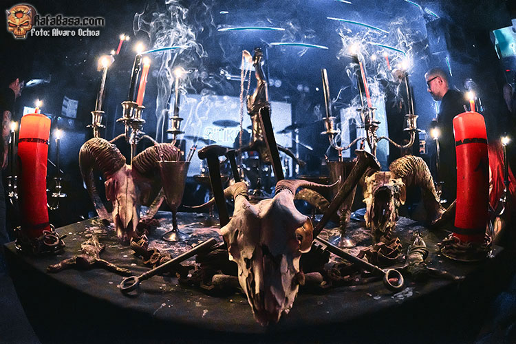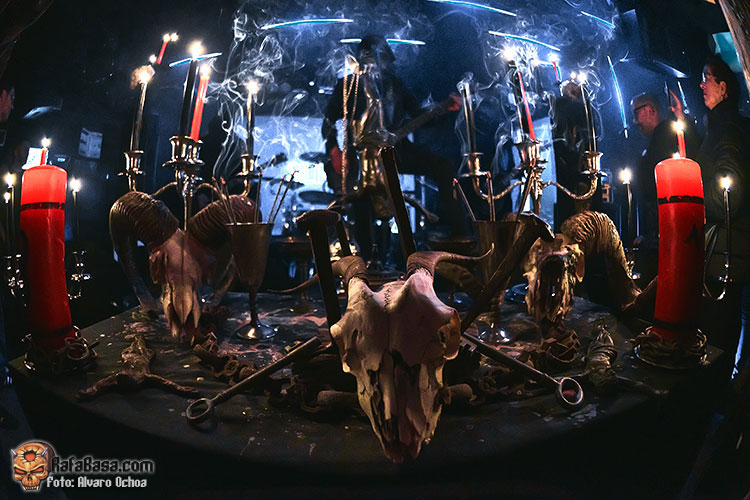 El público se aglomeraba alrededor del altar como si de un aquelarre se tratase, comenzaba la ceremonia, llegaba el turno de SPECTRUM MORTIS, ¡vaya grupazo! y ¡vaya bolazo! pocas bandas he visto con un directo tan hipnotizante como el de SPECTRUM MORTIS.