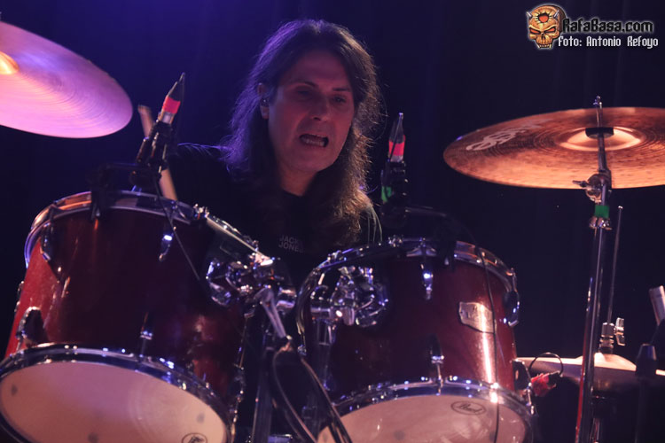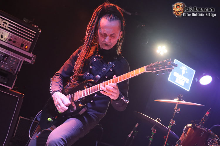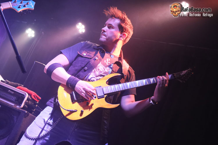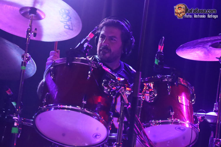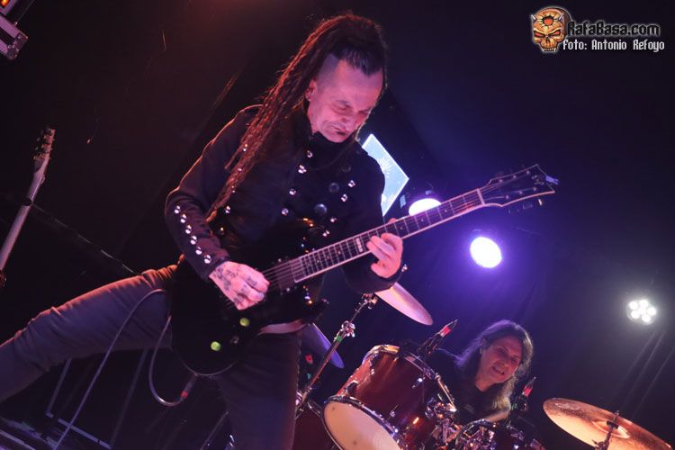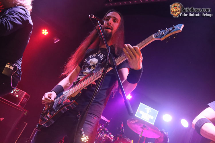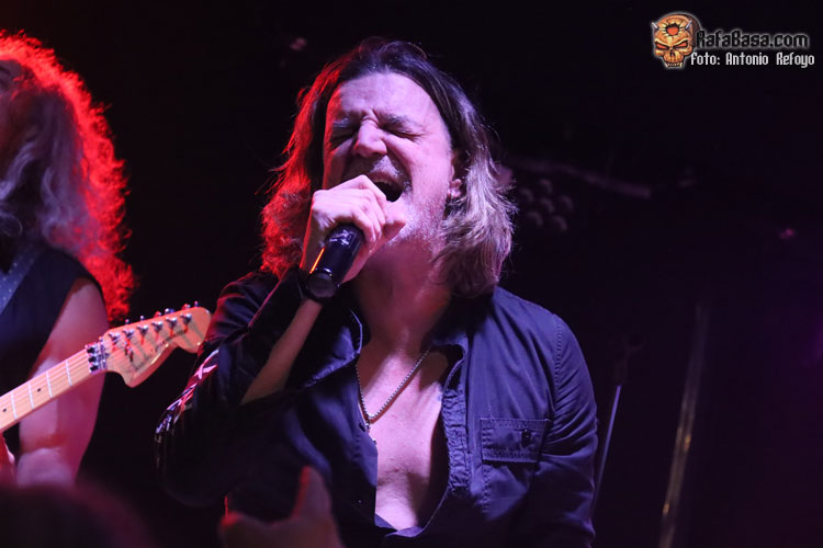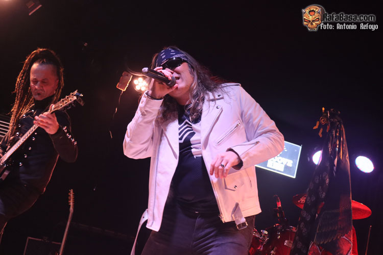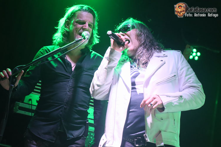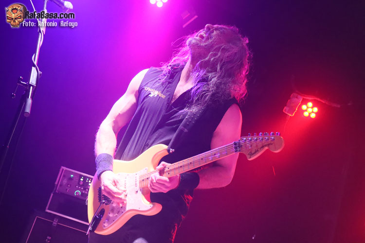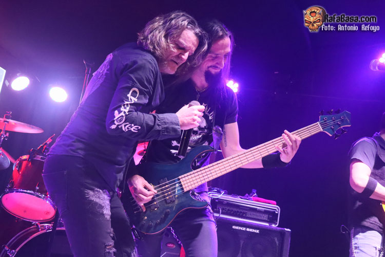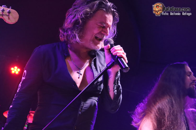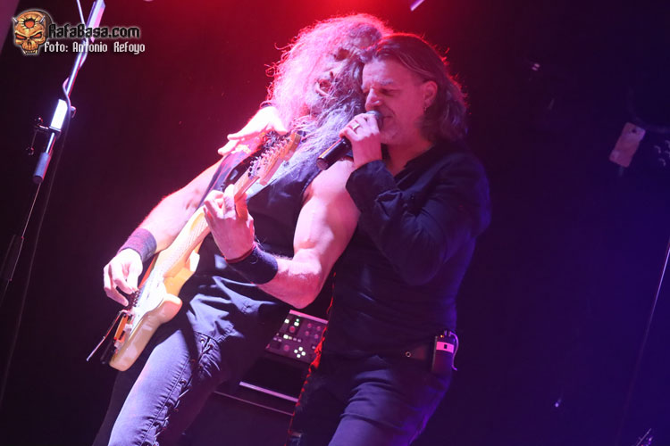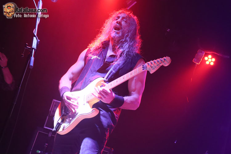 Fran Vázquez seguía muy dialogante con todos los presentes, metiéndose al personal en el bolsillo y celebrando su 50 cumpleaños este fin de semana. No le faltó el zorionak zuri cantado a coro por todos los presentes. Pero la banda también llegaba por temas que rezuman autenticidad heavy metalera y hard rockera, como “No Mires Atrás”, tras el que llegó un momento sublime con la adaptación del tema original de Richard Max “Angelia”, registrado en “III” como “Fuiste Mia” donde Fran quiso que se escucharan las gargantas de los presentes dirigiendo a la banda para que en un momento se relajaran para dar pie a escuchar al personal.