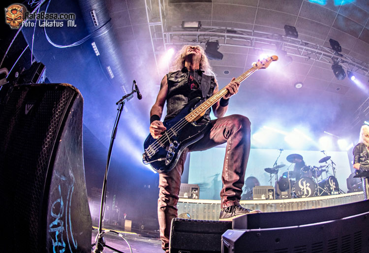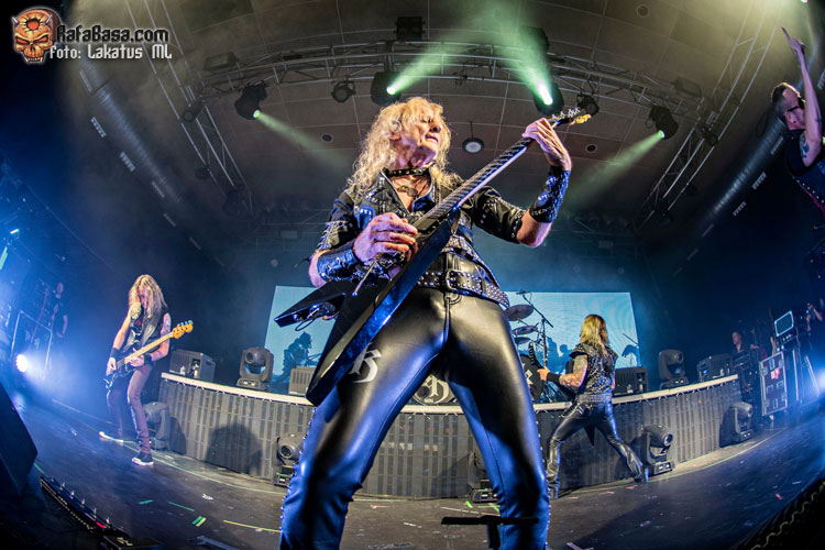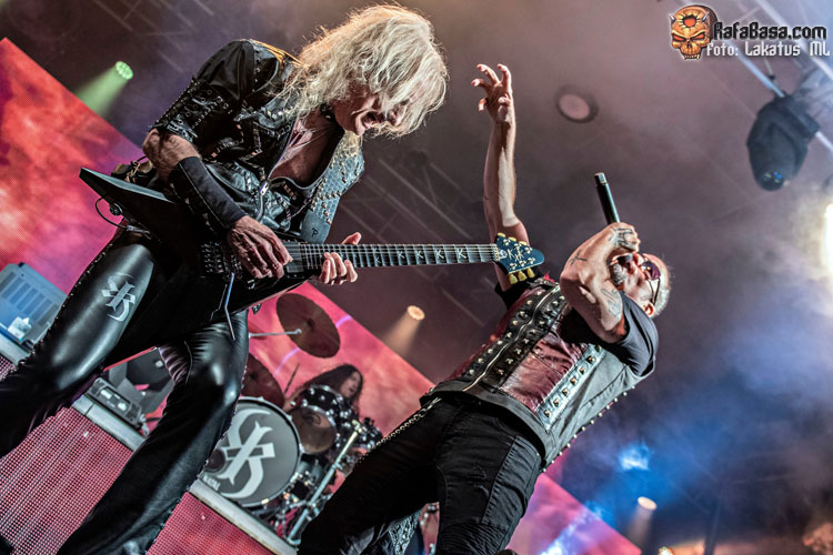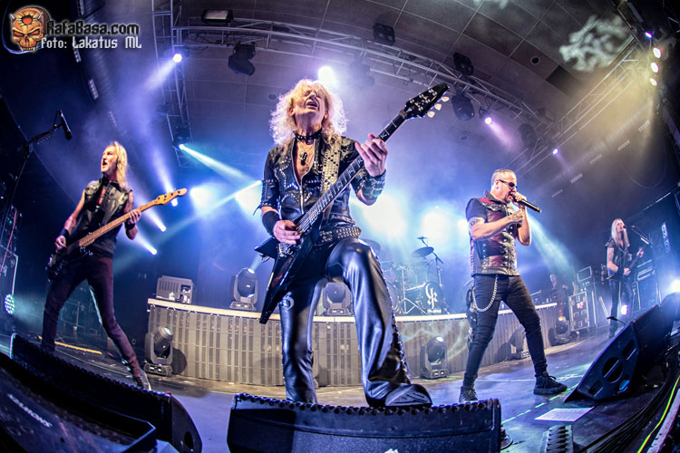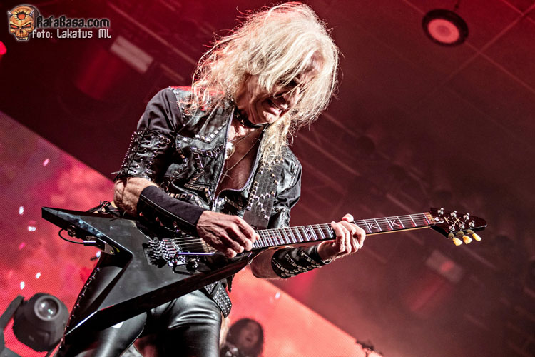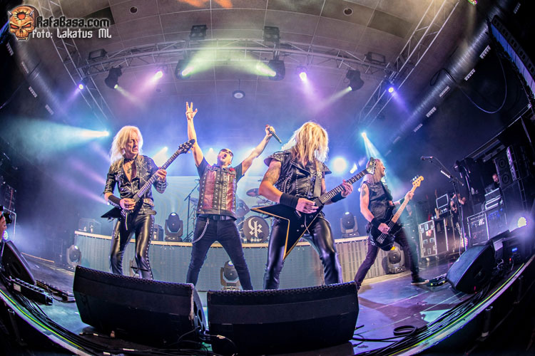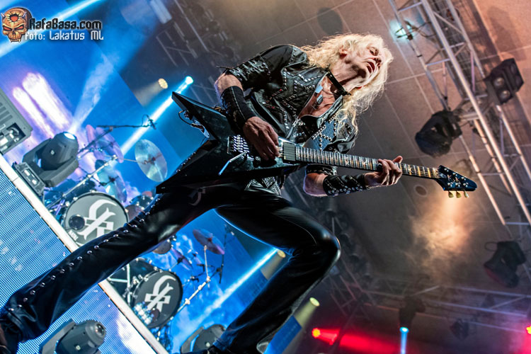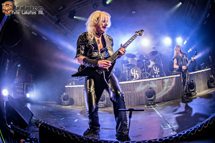 Al más puro estilo de la vieja escuela, una introducción en las pantallas ligeramente rocambolesca descubrió a los protagonistas de la velada y abrió paso a “Hellfire Thunderbolt” en una tónica absolutamente ochentera. Engalanados con un escenario más propio de festivales que se ajustaba como pudo al tamaño de la sala y el viejo conocido Tim “Ripper” Owens liderando el cotarro, empalmaron otros dos cortes de la nueva hornada como son “Strike of the Viper” y “One More Shot at Glory” exhalando ínfulas de tiempos primigenios y recibiendo por todo lo alto a una concurrencia eufórica desde los primeros compases del bolo. La formación funcionó perfectamente engrasada y músicos como A.J. Mills, Newton o Elg redondearon la experiencia dominado tanto el aspecto instrumental como el comunicativo con la audiencia. Tim Ripper comandó el bolo con maestría, corriendo de lado a lado y bajando abajo en un par de ocasiones para respaldar a un KK. Downing que se mantiene a un gran nivel.