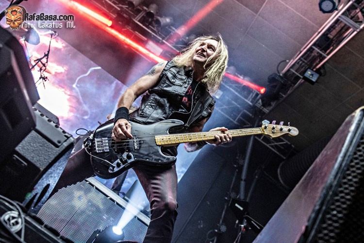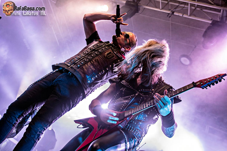 Instantes en el que desempaquetaron un bloque trepidante de himnos de JUDAS PRIEST que arrancó con la recia “Burn in Hell” liderada por un pletórico Tim Ripper disparando su tono al máximo y dejando claras sus competencias. Concatenarían dos himnos imprescindibles en la historia del acero británico como son “Beyond the Realms of Death” y “Hell Patrol” elevando el recital a cotas insuperables y desatando la locura en el recinto. Sin reducir un ápice la intensidad encararon otro triplete demoledor que empezó sosegadamente con “The Green Manalishi” antes de poner el recinto en ebullición con la infalible “Breaking the Law” donde Tim Ripper bajó finalmente tras unos amagos, a las primera filas en los estribillos, para entremezclarse con la concurrencia, antes de interpretar la fastuosa “Victim of Changes” que concluyó con potentes guitarrazos y gritos despampanantes en todo su esplendor. Momentos lustrosos en los que se apearon del escenario, amagando culminar la sesión.