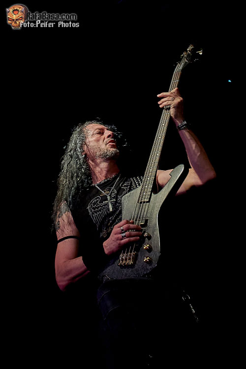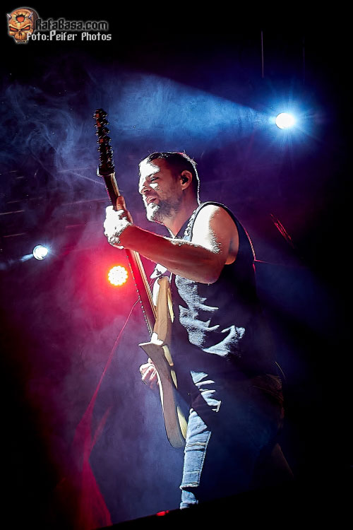La interacción entre el cantante y sus seguidores fue la tónica habitual y rápidamente saludó en euskera antes de acometer el siguiente repaso. Instantes en los que desprecintaron su material nuevo con una muy bien recibida “Opus Of The Night (Ghost Requiem)” que descolló antes de ser empalmada sin concesiones con “Insomnia” de su plástico Haven y el furibundo arranque de su himno indiscutible “When The Lights Are Down”.