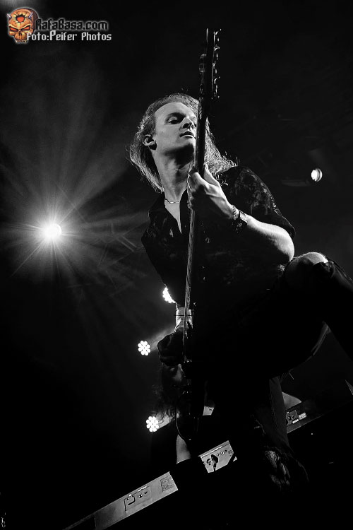 La banda dispuso en escena una primera línea con Thomas Young, Tommy Karevik y Sean Tibbets y una segunda con Oliver Pelotai y Alex Landenburg en la retaguardia. Entre medias, las continuas visitas de Melissa Bonny. Tommy Karevik aseguró que “Vespertine” era uno de los principales reclamos de sus seguidores y nos animó a bailarla con ellos. Los posos góticos cobraron protagonismo con una teatral “New Babylon” donde dos chicas con capucha hicieron aparición de forma solemne. Melissa tampoco quiso perderse el festín y a mediados de tema hizo su aparición. La banda cuidó mucho el aspecto teatral recurriendo a todo tipo de detalles y completó una puesta en escena vistosa que exhibió cañones de humo constantemente y alguna columnas de chispas que redondeaban el ambiente. Retrocedieron a tiempos pretéritos con una vetusta “Karma” que recuperó los mejores momentos de hace veinte años con toda la sala entonando el estribillo.