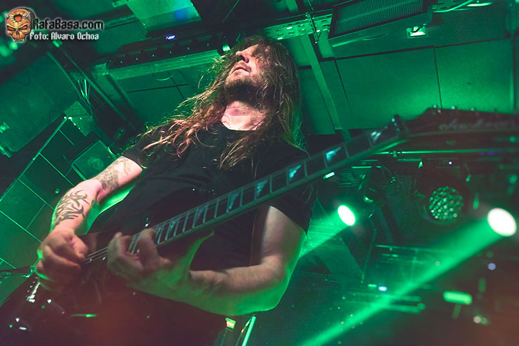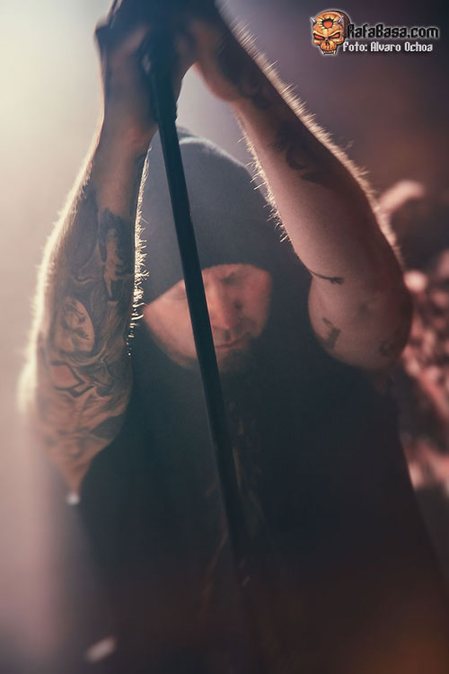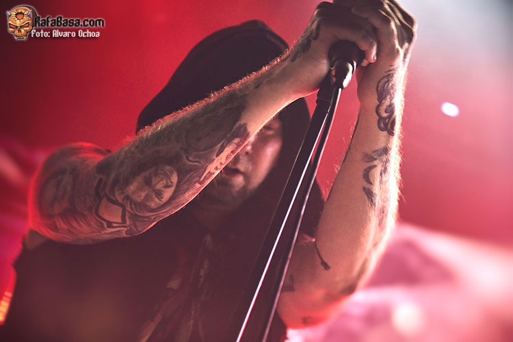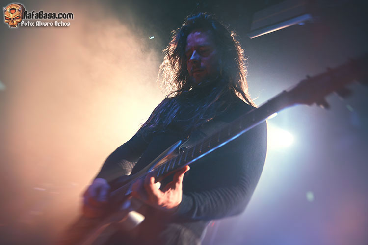 Las luces se apagaban y empezaban a sonar las primeras notas de “Innocence Was Long Forgotten” y las vocales de Mikko Kotamäki emergían como puñales de esa base rítmica de bajo y batería y las oscuridad se rompía por luces blancas que iluminaban desde detrás dejándonos vislumbrar siluetas negras de las que emergían elegantes y oscuras notas musicales. “What I Have Become” nos golpeaba con esos riff de guitarra a cargo del los extraordinarios Juha Raivio y Juho Räihä y los guturales Mikko Kotamäki descansaban sobre delicados registros melancólicos, y esto no hacía más que empezar, con “When a Shadow Is Forced Into the Light” regresaba al disco con el que comenzó todo para mi, y aquí caía en cuenta de lo bien que estaban sonando los Swallow en esta sala, un sonido nítido y potente, elegante, sutil y por momentos agresivo, resultando sencillo escuchar cada uno de los matices escondidos en cada una de sus piezas.