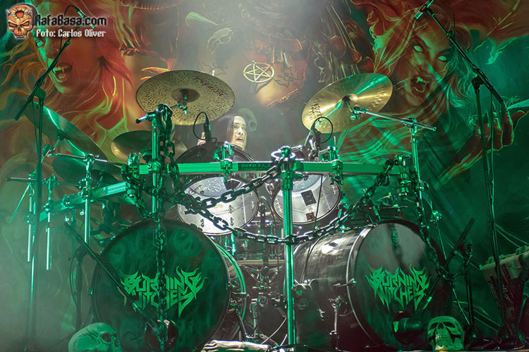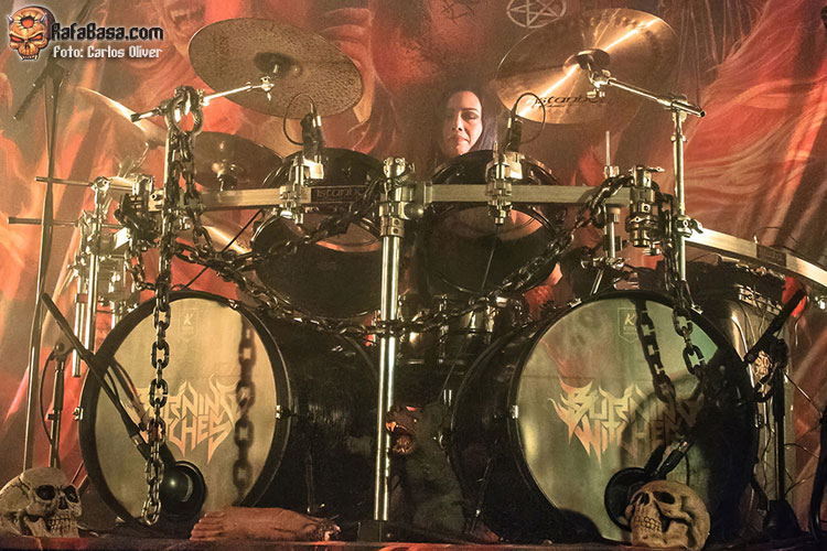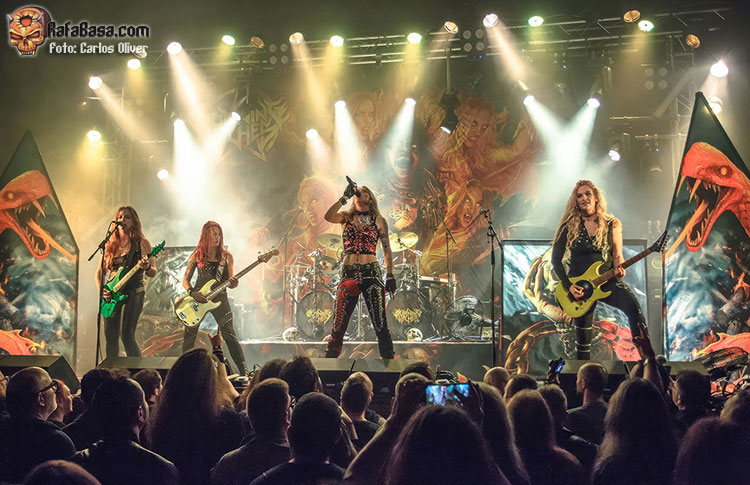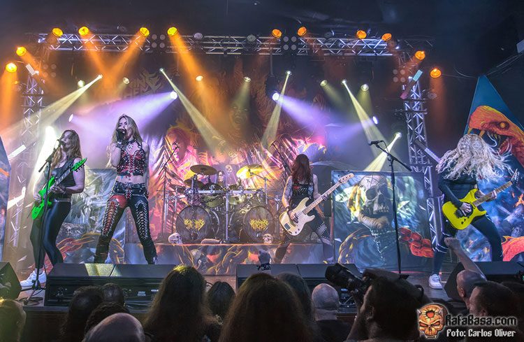 Con el oscuro repicar de las campanas poniéndonos en alerta, irrumpía en escena una hechicera portando la cabeza de una bruja. Las chicas no tardarían en regresar para adueñarse de las tablas y asestarnos un mandoble certero y mortal como fue “Hexehammer”. La velocidad, la garra y, en definitiva, el speed metal más clásico volvería a hacer las delicias del personal durante “Wings Of Steel”. La perfecta comunión con el público, que alzó los brazos y gritó para acompañar, quedaría plasmada al encarar la recta final del show con la reptante y demoledora “The Witch Of The North”. Mientras que el golpe de gracia definitivo, con banda y público saltando en perfecta sintonía, siguiendo las indicaciones de Laura, que literalmente se desfondó, llegó con la hímnica pieza que presta nombre a la formación: “Burning Witches”.